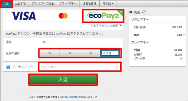 ポーカースターズ ecoPayzで入金