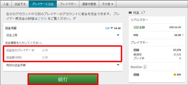 ポーカースターズ 送金方法