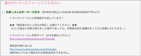 ひゃっほう掲示板の『誰かがトランスファーしてくれるスレ』