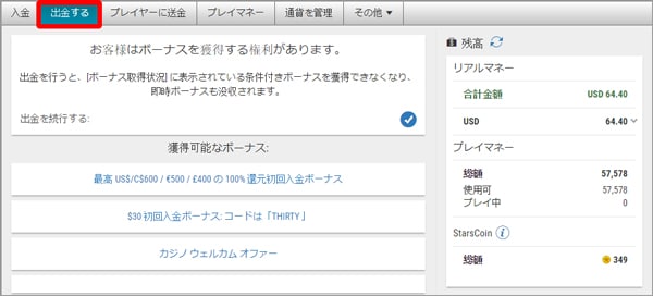 ポーカースターズ 出金方法