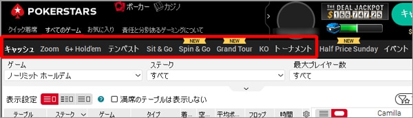 ポーカースターズ ゲーム種目