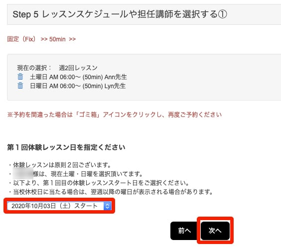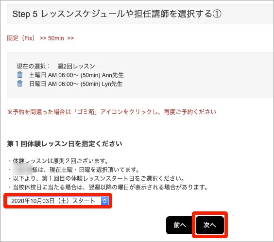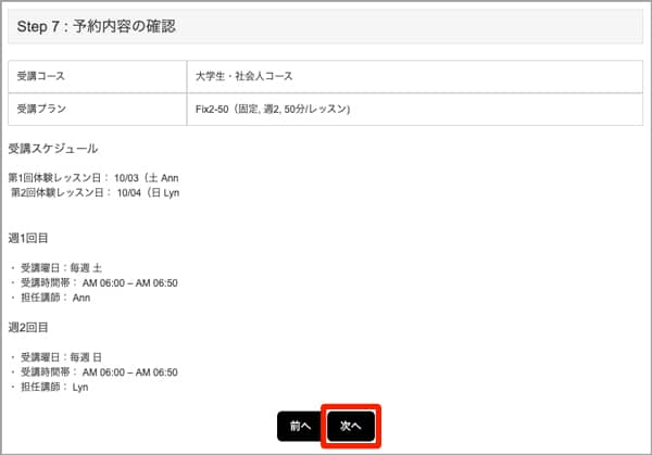 ウィリーズ英語塾 レッスン予約内容の確認